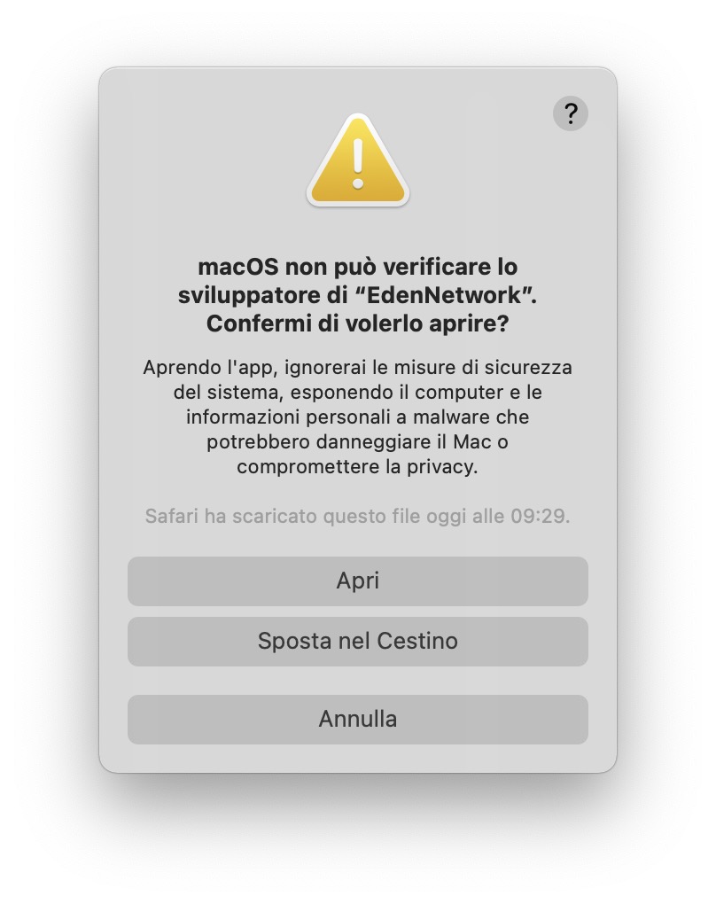 - Consenti l’esecuzione di EdenNetwork facendo click su Apri: